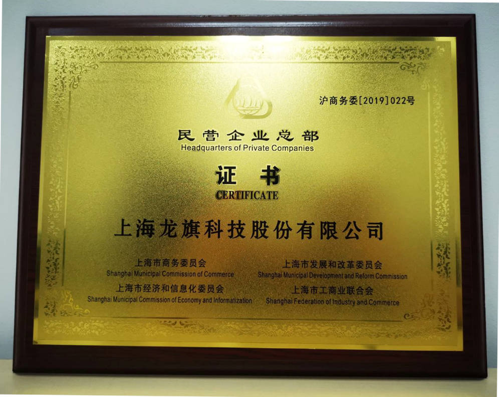 "Longcheer won the first batch of Shanghai private enterprise headquarters certificate"